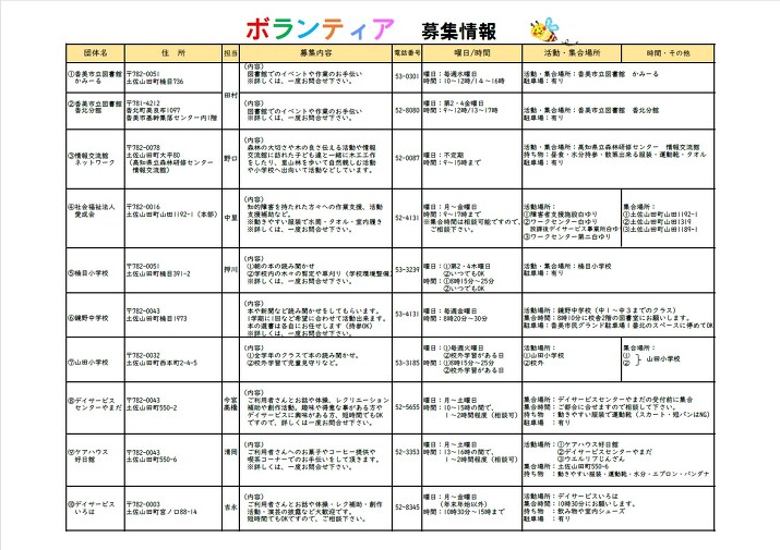 香美市ボランティア募集情報Web版